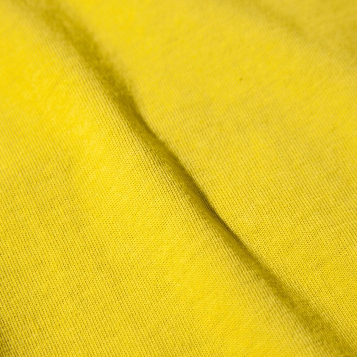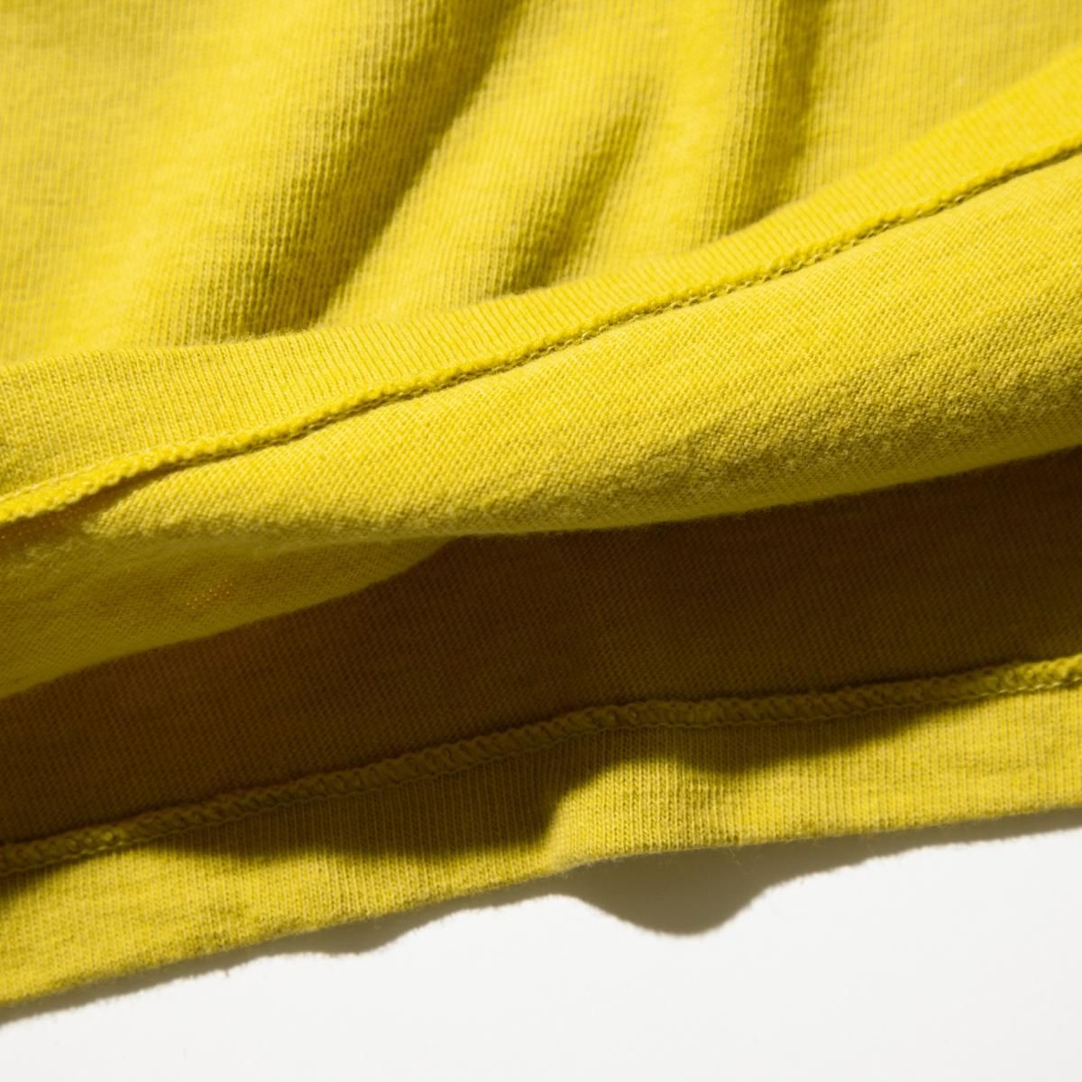 吊り編み機の丸胴仕様では実現することができなかったサイズを両脇で剥ぐことで、ゆったりとした身幅を実現しました。また、ジャストサイズでの着用でもしなやかに伸縮する吊り編み天竺ですので、快適な着心地をお楽しみいただけます。