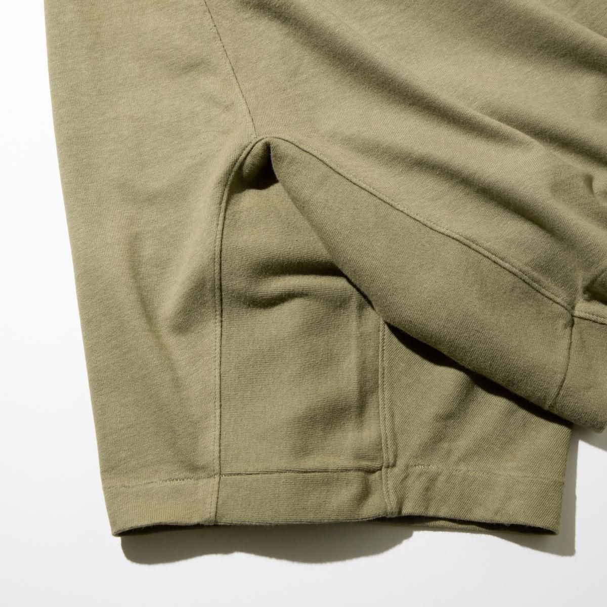 自宅で過ごす時間に不要となり得る凹凸を感じるポケットは付けずに、シンプルなディティールに仕上げました。パンツとしてはライトウェイトな素材ですが、耐久性を高める縫製仕様を採用し質実剛健と呼ぶに相応しい作りです。