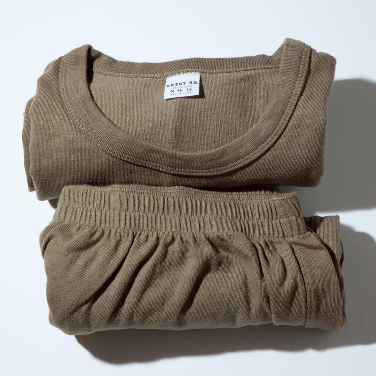 裾は天地縫いでシンプルに仕上げました。また高伸度のウーリー糸を採用することで、見た目にもシンプルで美しく、着脱時にもっとも負荷のかかる裾の縫製に適した、ENTRY SG.定番の縫製仕様です。