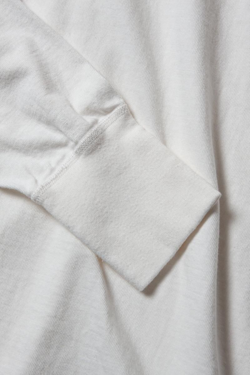 ソノラのロングスリーブ仕様メリダがラインナップに加わりました。肩、アームホールから袖口にかけての縫製はユニオンスペシャルのフラットシーマで縫い上げました。最良の素材と高度な職人技が結集してつくられたこの製品は時を経てさらにフィットし、着るたびにあなたとの絆を深めてくれるでしょう。