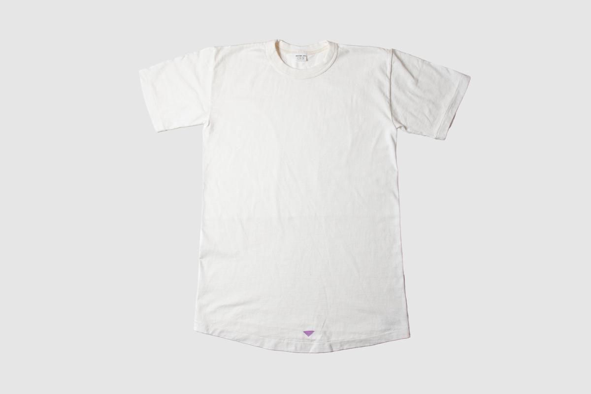 現在では希少となる旧式の編み機を使用して編み立てた素材を使用しており、もちろんA品と変わらぬ着心地をお楽しみいただけます。個性ある一点モノとして、この製品があなたのお気に入りの一着となってくれましたら嬉しく思います。