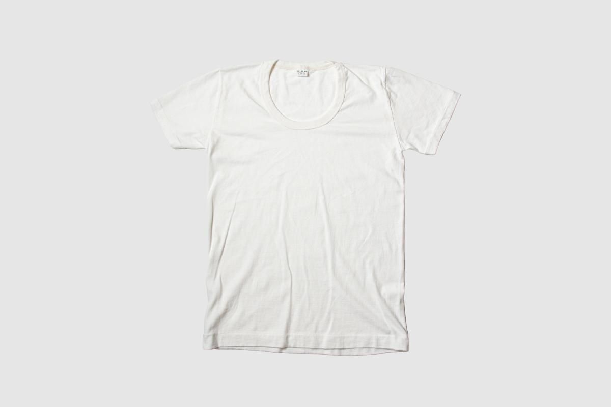 現在では希少となる旧式の編み機を使用して編み立てた素材を使用しており、もちろんA品と変わらぬ着心地をお楽しみいただけます。個性ある一点モノとして、この製品があなたのお気に入りの一着となってくれましたら嬉しく思います。
