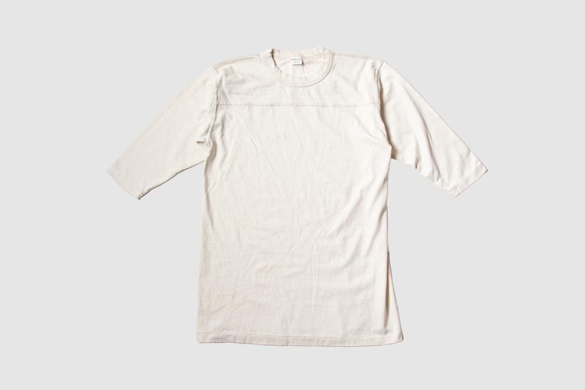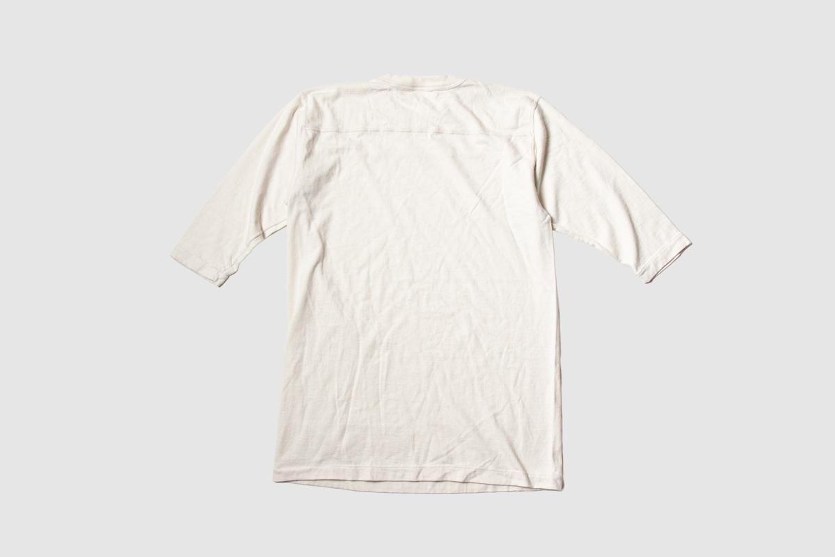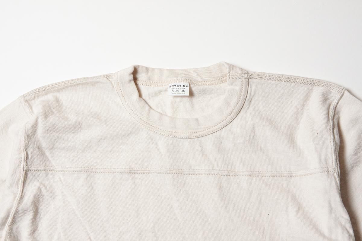 現在では希少となる旧式の編み機を使用して編み立てた素材を使用しており、もちろんA品と変わらぬ着心地をお楽しみいただけます。個性ある一点モノとして、この製品があなたのお気に入りの一着となってくれましたら嬉しく思います。