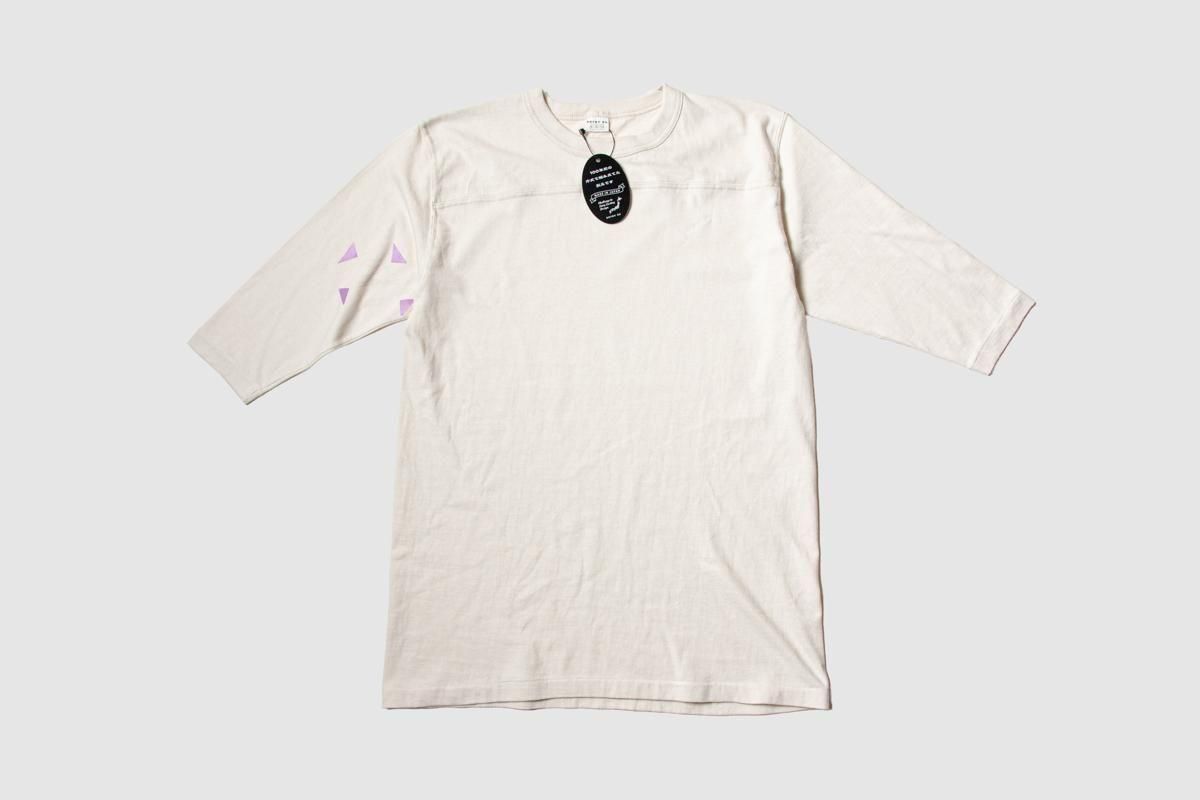 現在では希少となる旧式の編み機を使用して編み立てた素材を使用しており、もちろんA品と変わらぬ着心地をお楽しみいただけます。個性ある一点モノとして、この製品があなたのお気に入りの一着となってくれましたら嬉しく思います。