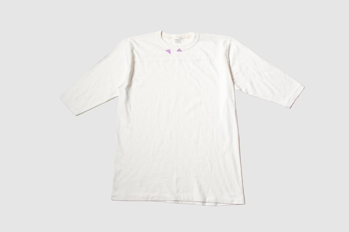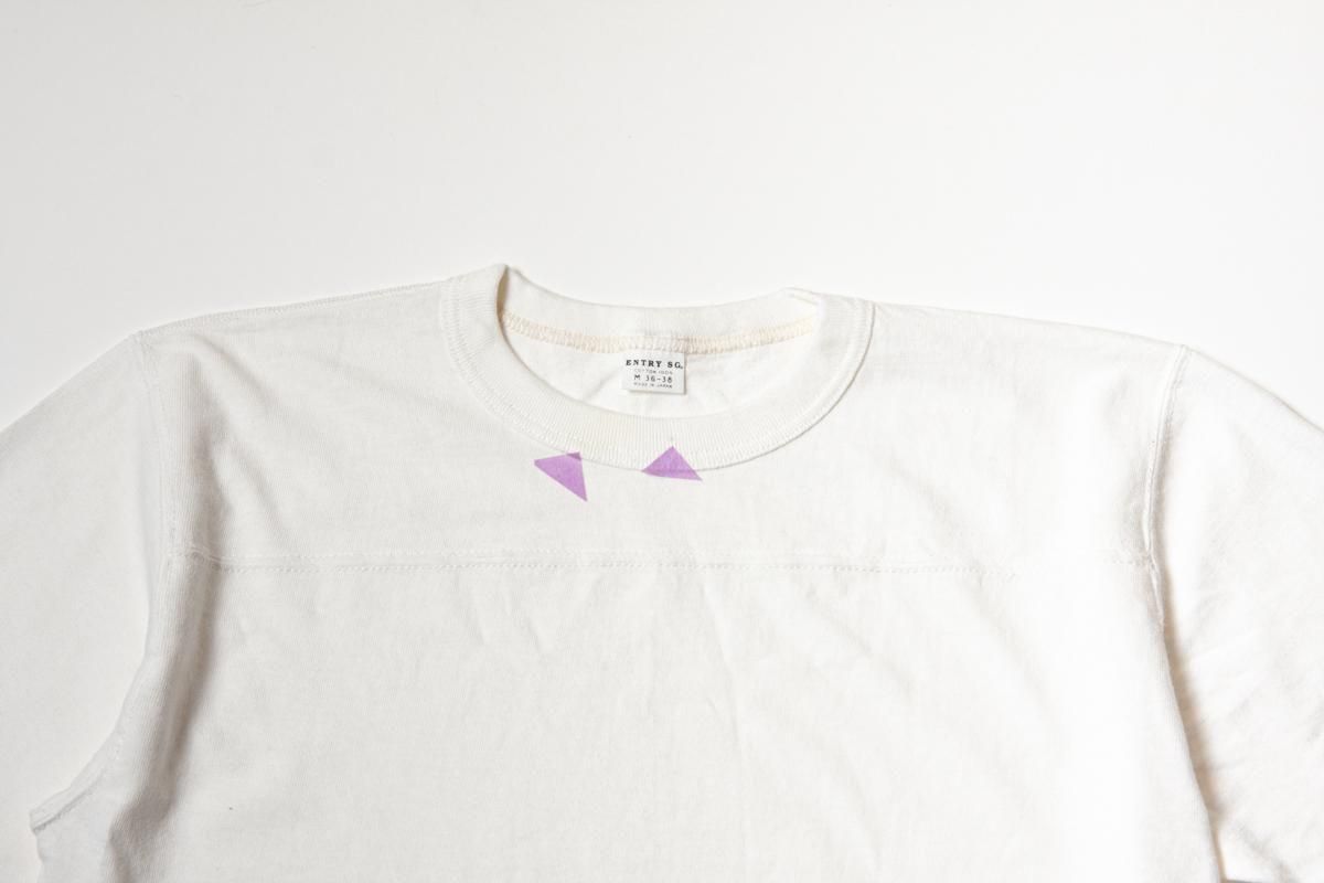 現在では希少となる旧式の編み機を使用して編み立てた素材を使用しており、もちろんA品と変わらぬ着心地をお楽しみいただけます。個性ある一点モノとして、この製品があなたのお気に入りの一着となってくれましたら嬉しく思います。