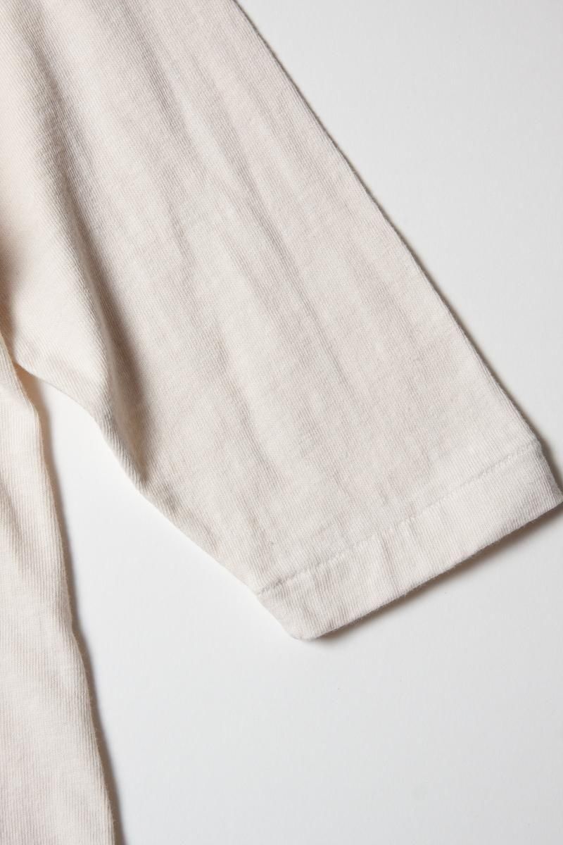 シンプルでややタイトなシルエットを描く、5 分袖丈の T シャツです。