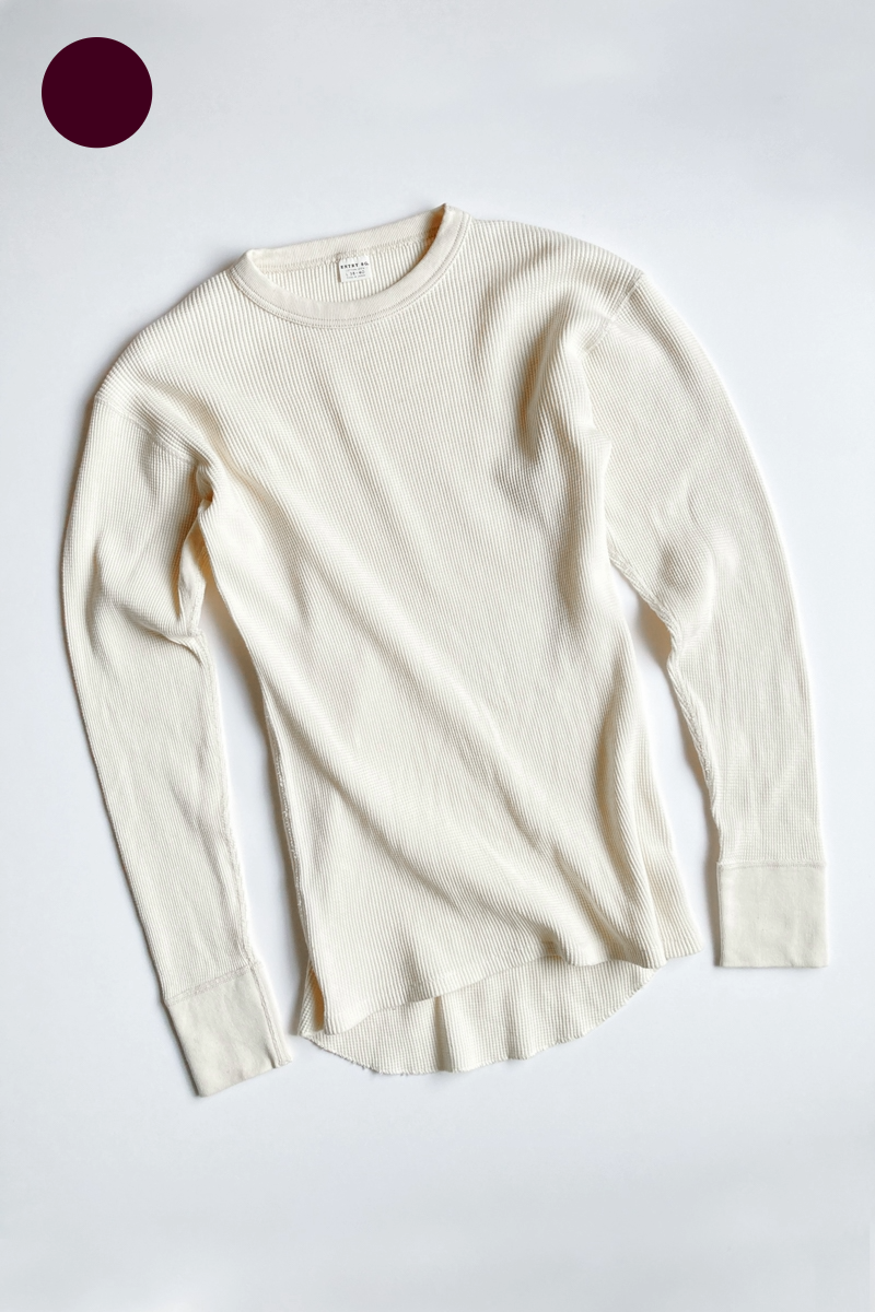 やわらかな肌触りながら、とても丈夫なワッフルロングスリーブTシャツです。